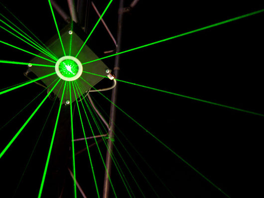 In a disco or nightclub, you often want beams to fill the all of the space, but it is sometimes difficult to do, with traditional lasers on the market. The DiscoScan 2.0 is a super-wideangle lens designed specifically for laser projectors. Using the DiscoScan Lens, laser beams can go anywhere in a 360° hemisphere.